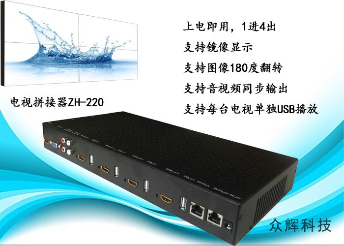 可以鏡像拼接的4電視機拼接器ZH-220