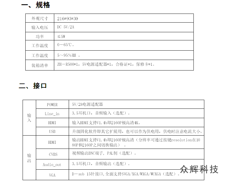 此款為ZH-R400的升級高端版本ZH-R500,此版本為全新發(fā)售,Linux嵌入式系統(tǒng),支持NPU,全按鍵操作,自動記憶,自帶測試底圖,沒有信號接入時也可以調(diào)試,輸入輸出分辨率可以設(shè)置為1080P和2160P。支持上下左右鏡像,可做為題詞器使用。彌補(bǔ)之前版本分辨率低,顯示文字不清楚的問題,如果對顯示要求不高,價絡(luò)敏感的用戶也可以選擇ZH-R100 如果輸入不要求4K,可能選擇1080P輸入的ZH-R400,如果喜歡安卓系統(tǒng)可以選擇ZH-R300。